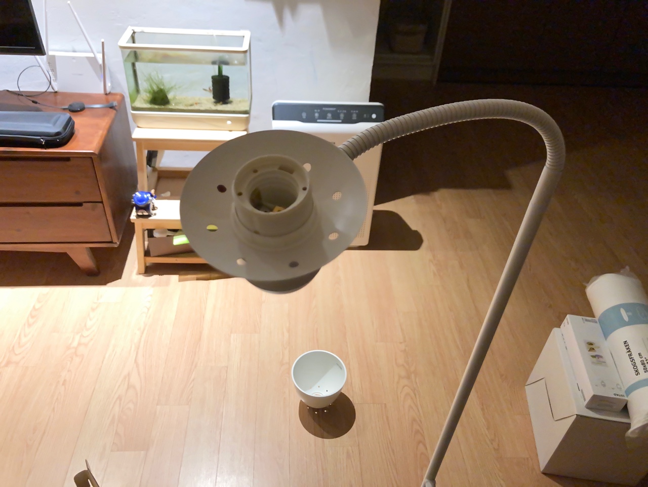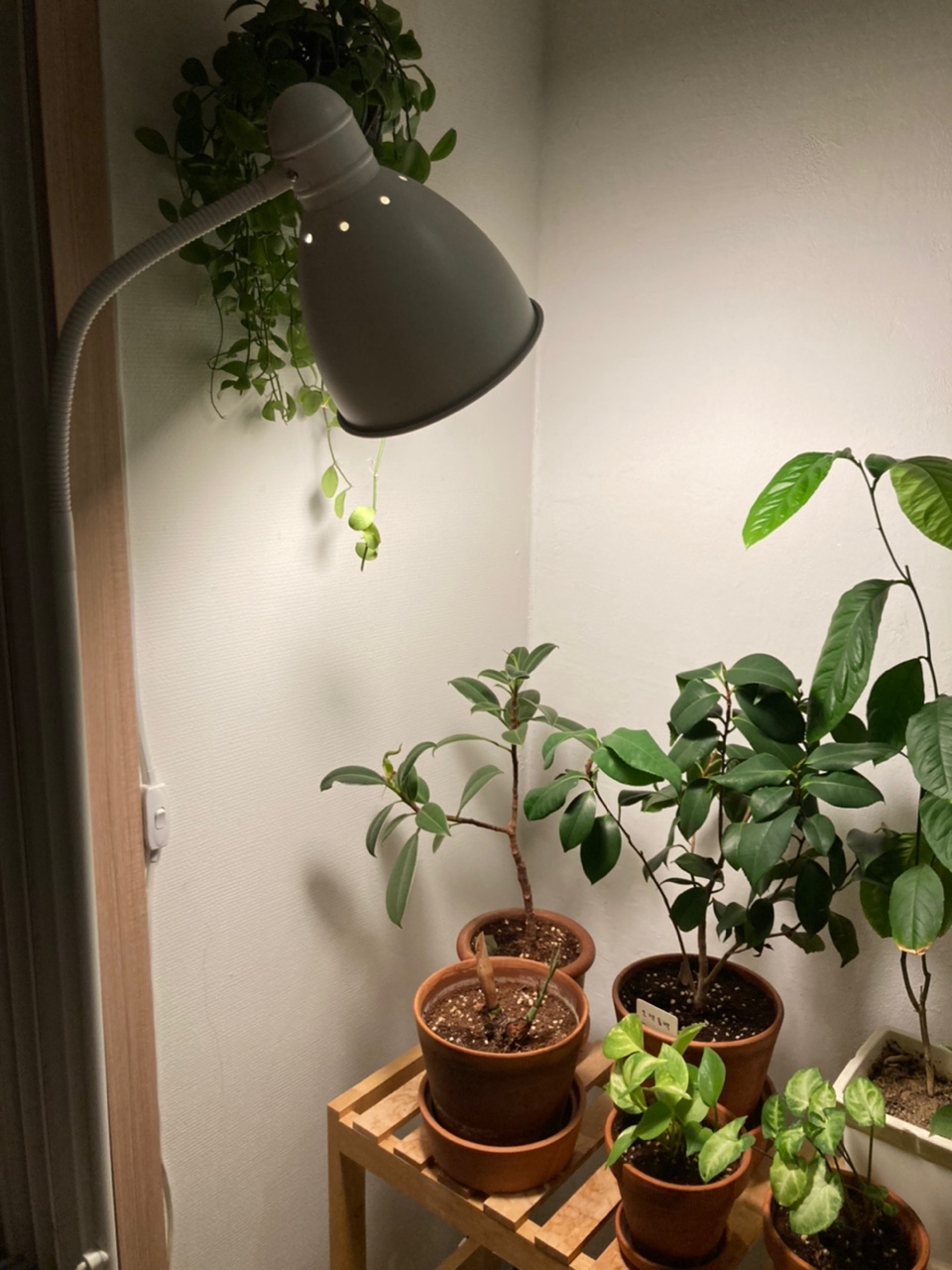FORSA 포르소 - 전등갓 측면에 소켓이 달려 커다란 식물 LED 전구를 결합할 공간이 나오지 않습니다. 같은 이유로 당근 마켓에 올라온 걸 봤어요! 그리고 사용 중인 식물대에 올려놓을 공간이 없구요..흐흐ㅋㅋㅋ