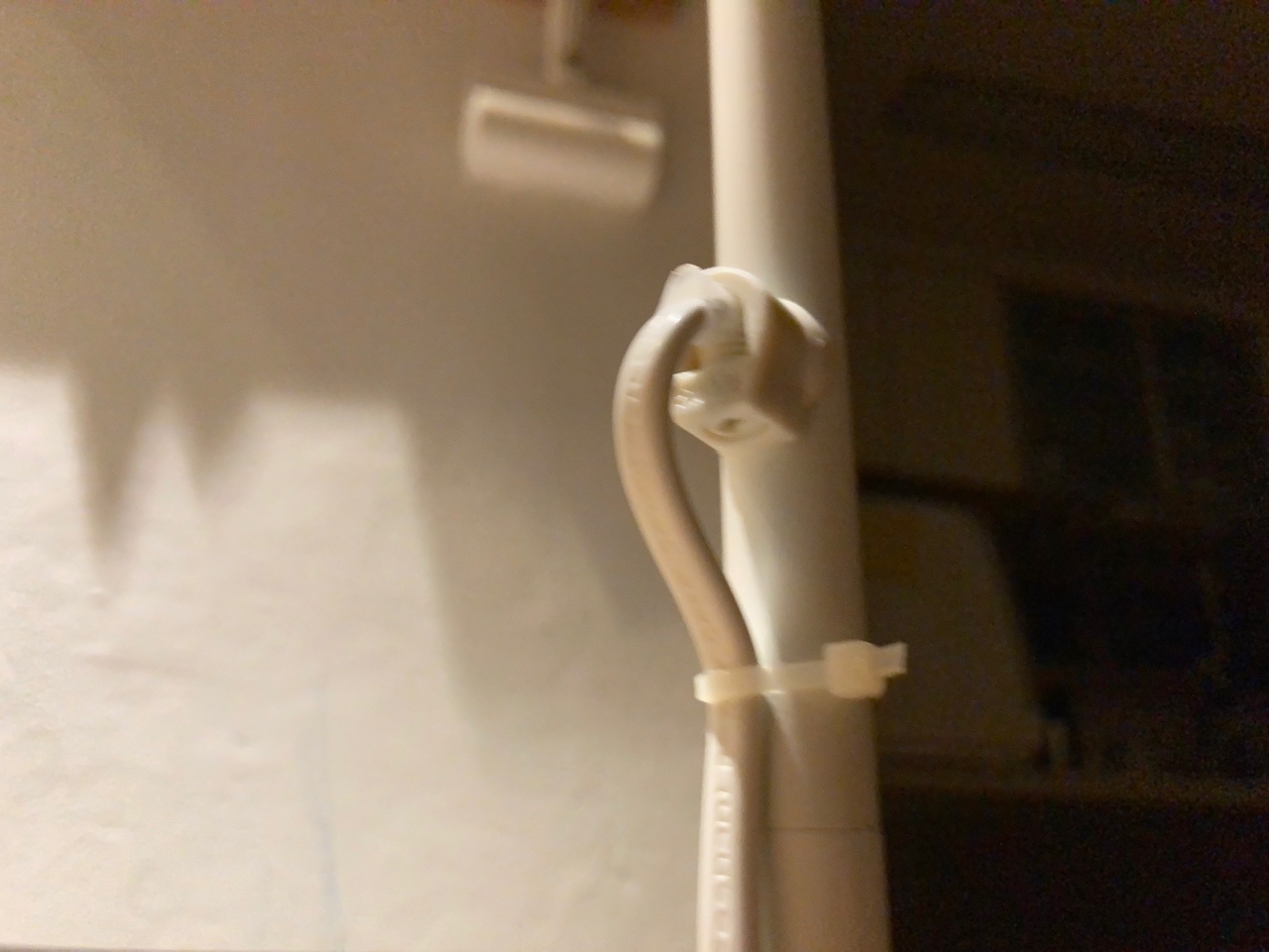 살짝 아래를 향하게 잡고 케이블 타이로 묶어줬습니다.