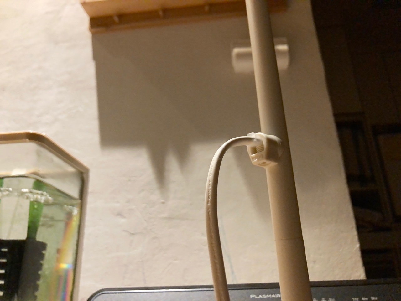 전원선이 중간에 툭 튀어나와있습니다. 전원 공급의 방향으로부터 자유로 울 순 있겠다만 저희 집 대부분의 전원은 바닥에 많으므로 작은 노동력을 더한 약간 튜닝(?)을 합니다.