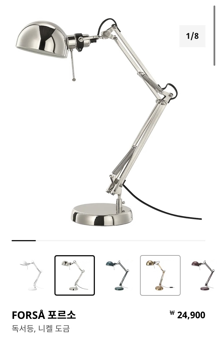 선택하는 중간에 고민했었던 다른 제품 중에선 FORSA 포르소 라는 조명과 TERTIAL 테르티알 이란 조명이 있었습니다. 하지만 제가 필요해하는 기준에 맞지 않아서 포기했어요. 저런 클래식한 디자인도 좋아하는데 다음 기회에 들이는 걸로...ㅠㅠ