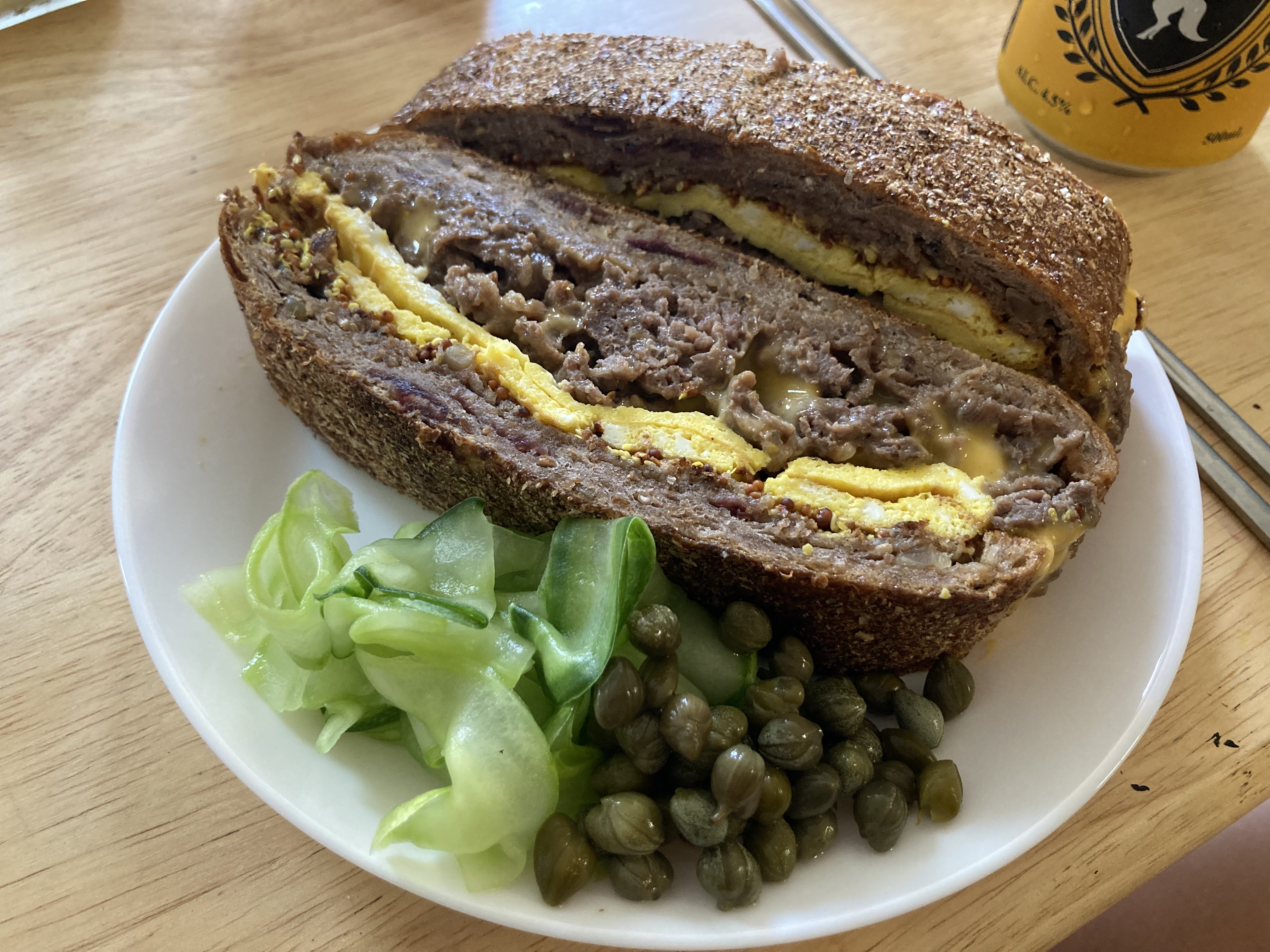 단단히 눌려서 밀도높은 샌드위치가 되었습니다.