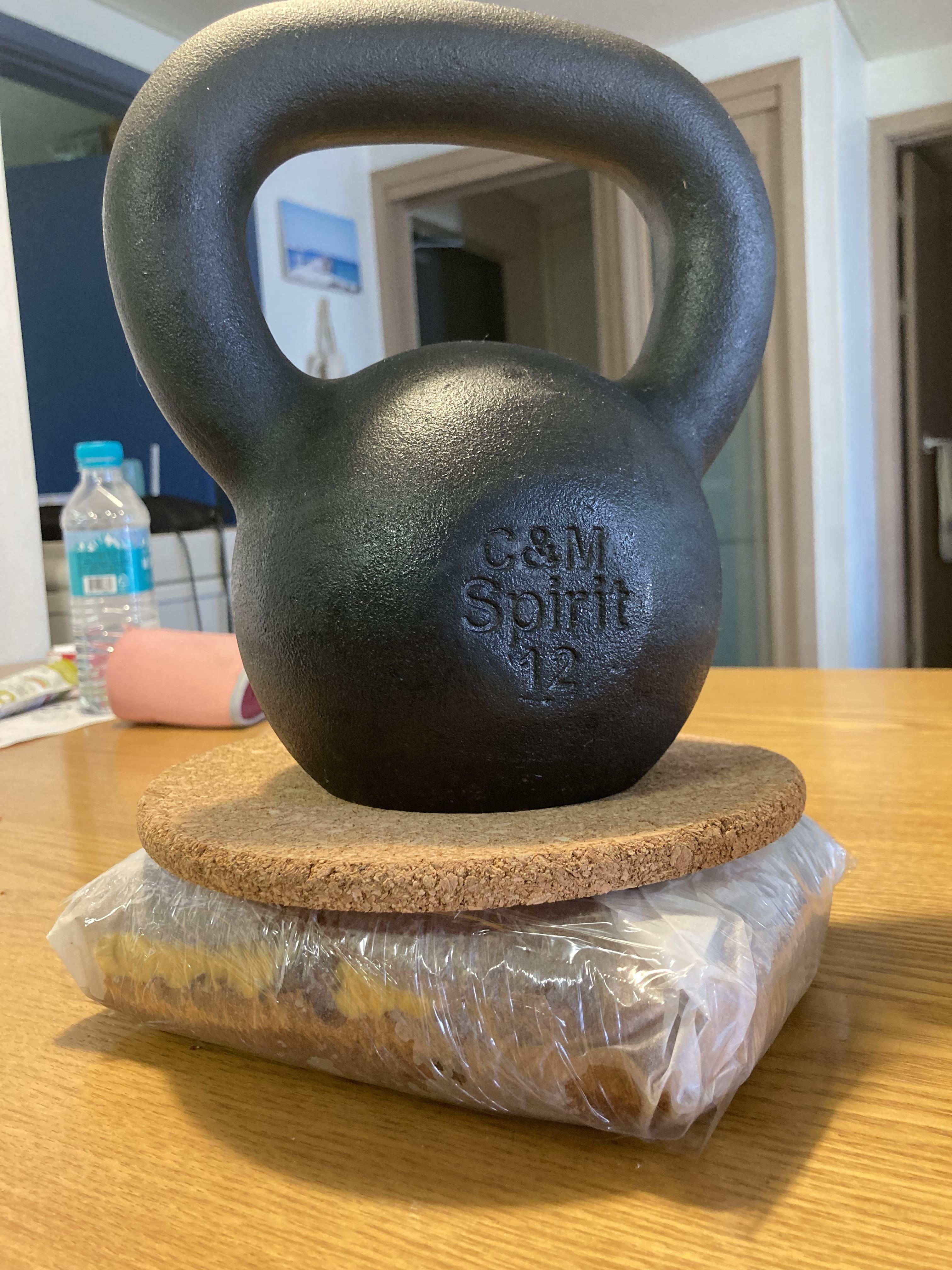 12kg짜리 캐틀벨로 꾹 눌러줘요....ㅋㅋ...