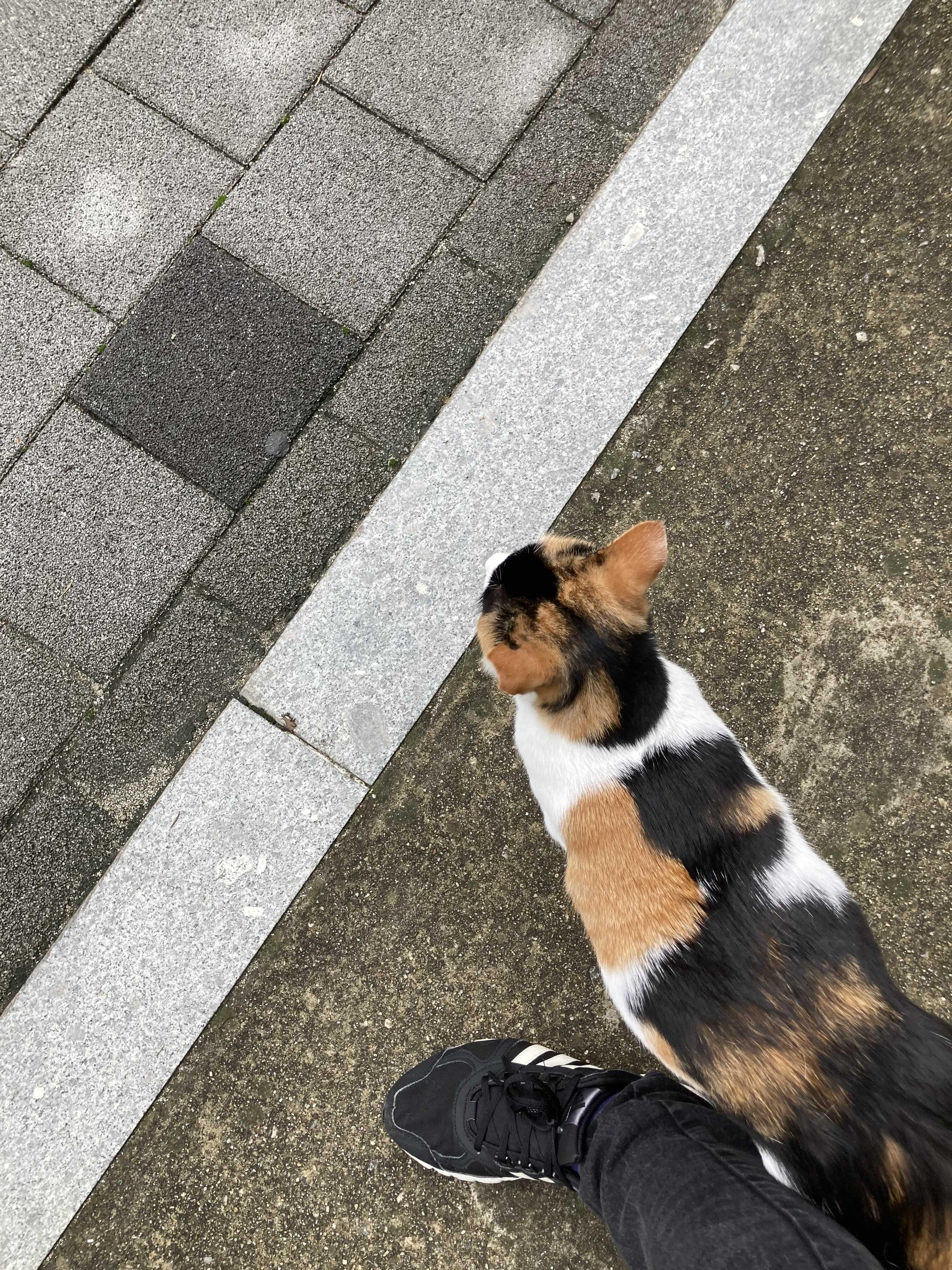 헤어지고 하던 산책을 하고 집에 돌아오는 길에 편의점 앞에 앉아있는 냥이를 봤습니다.